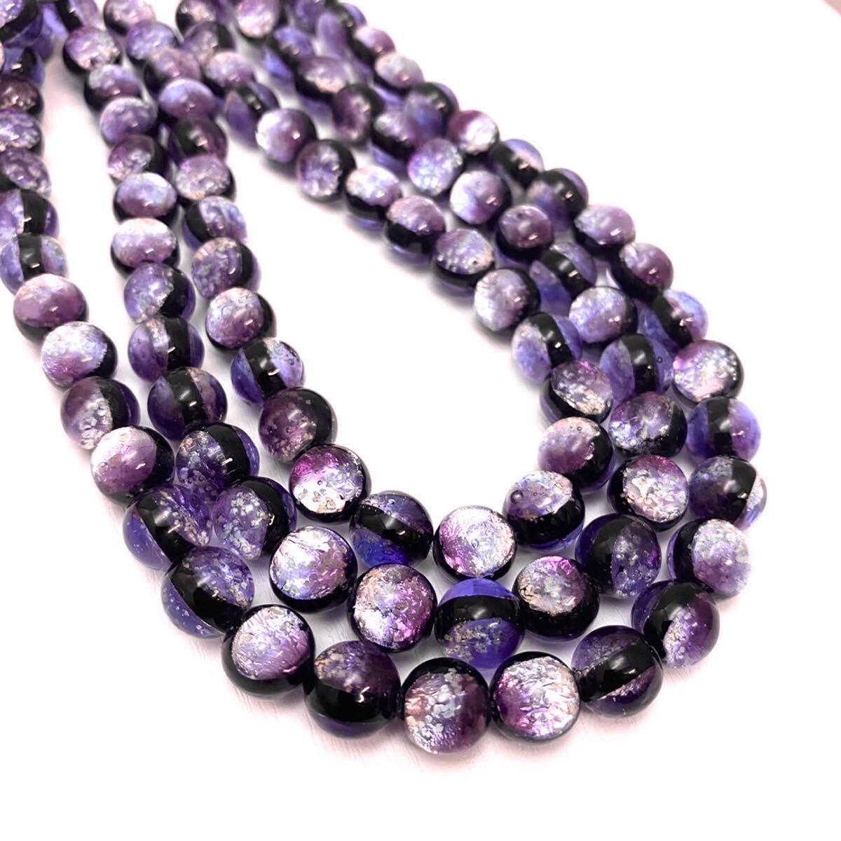 - マリンパープル 10mm 連売り 40粒 蓄光 ホタルガラス とんぼ玉 とんぼガラス