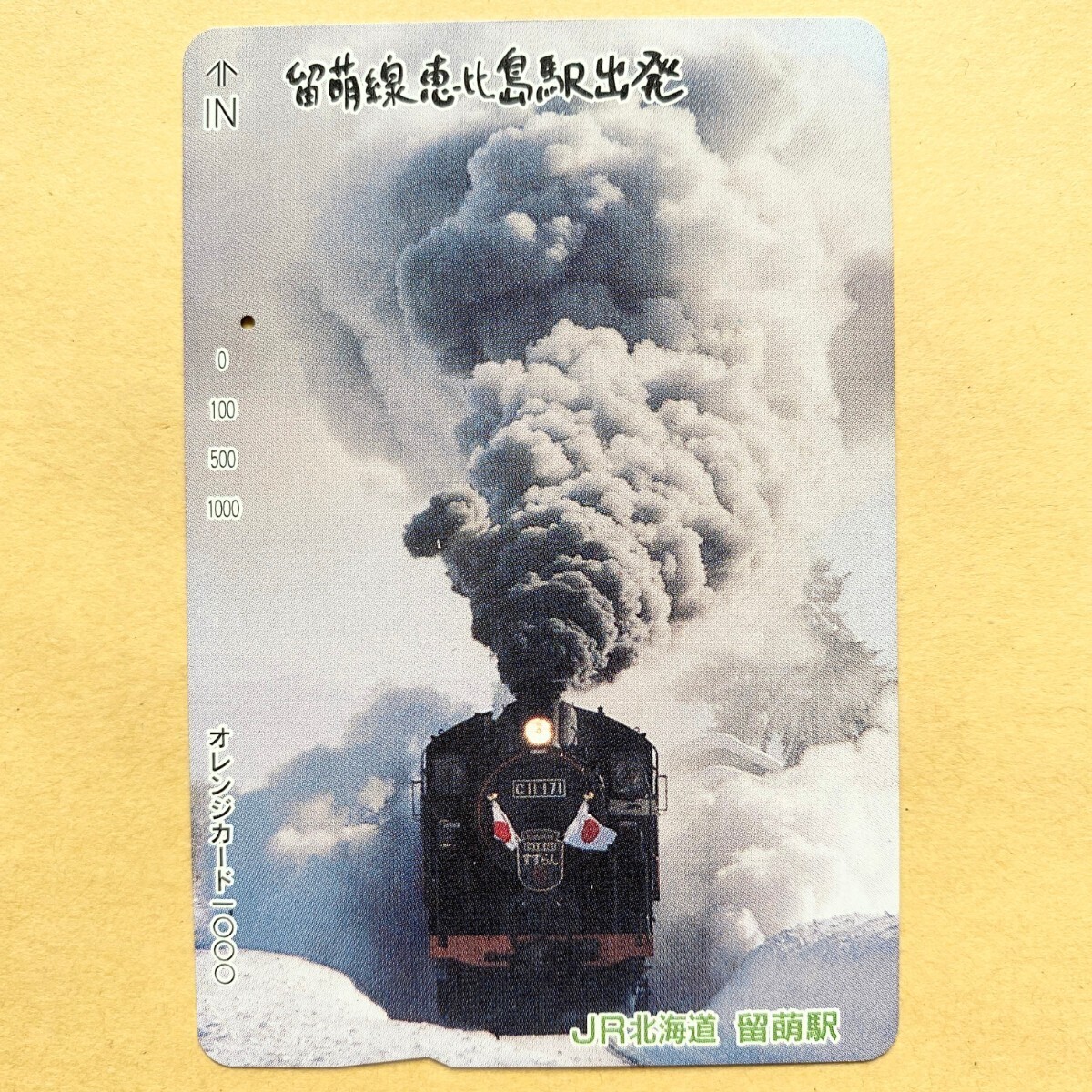 - 【使用済】 オレンジカード JR北海道 留萌線恵比島駅出発 SL すずらん号