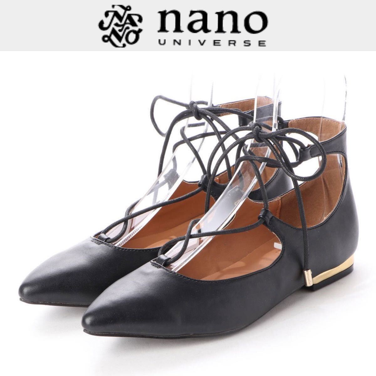 - 新品☆nano UNIVERSE レースアップフラットパンプス 黒ブラック 35 22.5cm ナノ・ユニバース 編み上げ