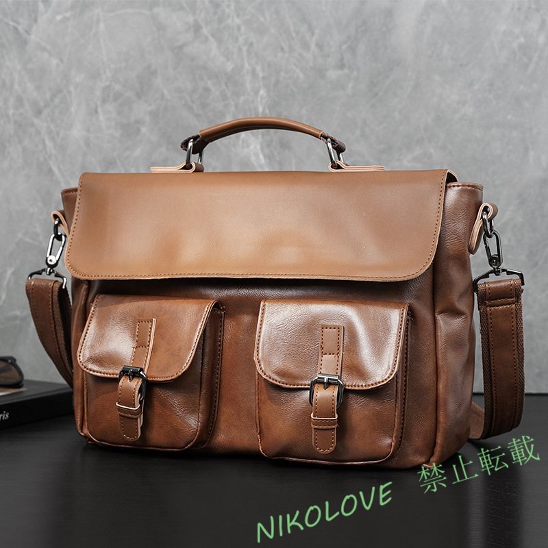 - ショルダーバッグ ビジネスバッグ レザー 革 2way トートバッグ 高品質 かばん メッセンジャーバッグ キャメル AB255