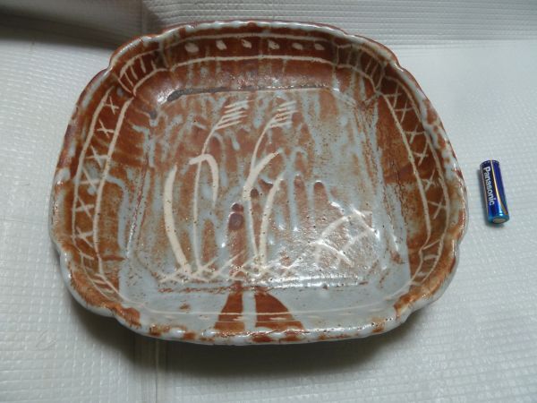 - SIW805 【ジャンク】 陶器 陶磁 中皿 ススキ模様 きく 横幅 26cm×奥行 25.5cm×高さ 5cm