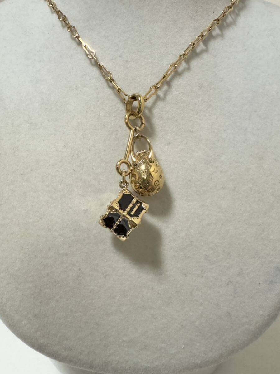 - 【質屋 尾張屋商店 東京】 ☆洗浄済☆ ルイヴィトン コリエ・シェンヌ エッグ トランク ミニグラム M68933 ネックレス レディース