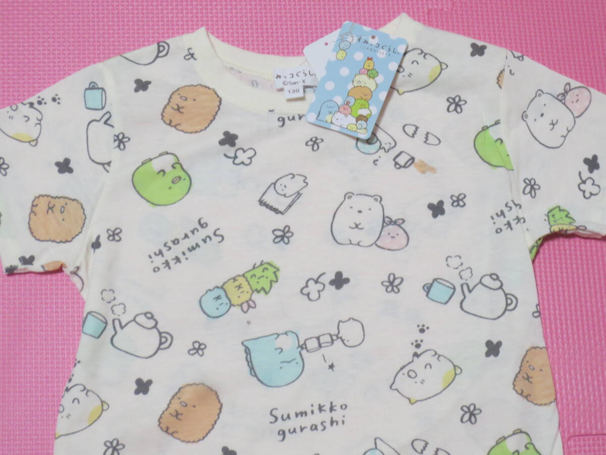 > 新品 130 すみっコぐらし 半袖Tシャツ ナチュラルすみっコ 総柄 しろくま とかげ ねこ ぺんぎん? とんかつ 女の子 夏物 120cm〜 送料無料