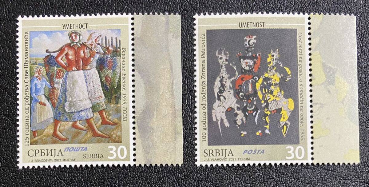 - セルビア 芸術 サヴァ・シュマノビッチ誕生125年 ゾラン・ペトロヴィッチ誕生100年 絵画 美術 2種完 未使用 NH