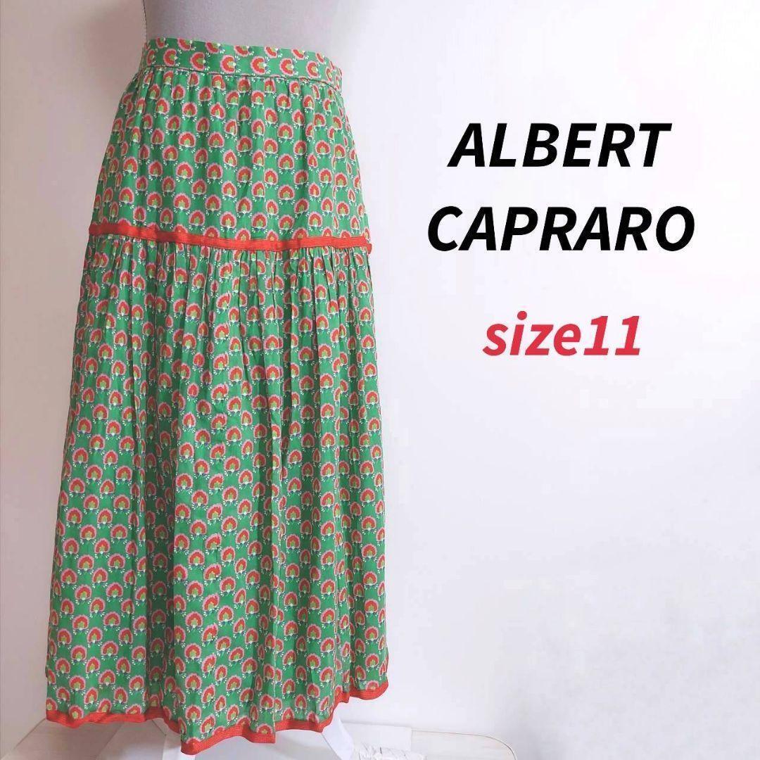 > ALBERT CAPRARO コットン素材・総柄ロング丈スカート 表記サイズ11号 L 緑グリーン 原色 66574