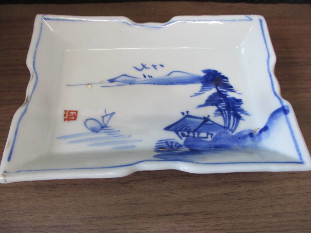 - ☆お皿 風景 古い? 高さ2.5㎝ 11×15.5㎝ ※色落ち・窯キズ・汚れキズ等あり状態悪い tm2403-22-2☆