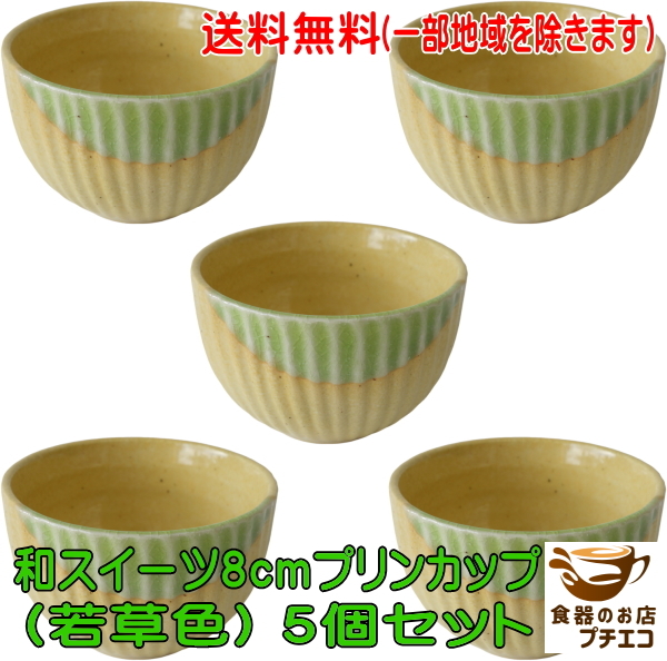 - 送料無料 若草色 和スイーツ 8cm プリンカップ 5個 セット ミニ小鉢 レンジ可 食洗器対応 美濃焼 日本製 和菓子