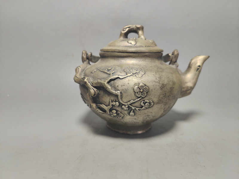- 蔵友旧蔵出 白銅製 梅花紋 提梁酒壺 密宗密教 供養品 仏教美術品zz