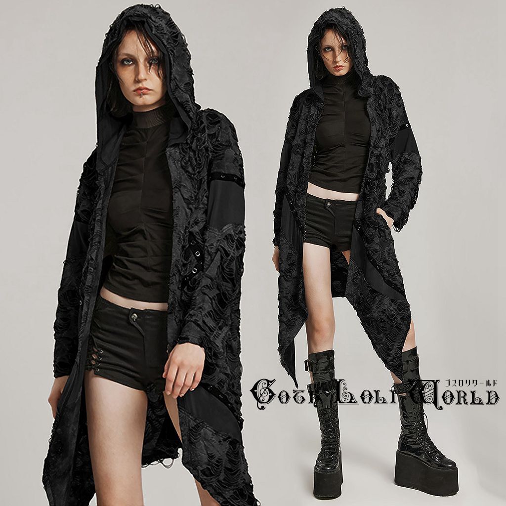 > WY-1586ZCF-BK-M-L 切り替えスーパーブロークン加工ロングジャケット 黒色 ゴスロリワールド ゴシック パンク ロック ビジュアル系 V系