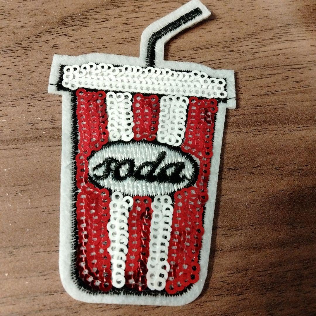 - 【ワッペン】ソーダドリンク アイロン アップリケ スパンコール 素材 ラメ