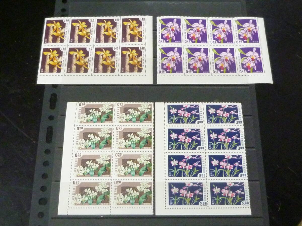- 24 S №92 台湾切手 1958年 SC#1189-92 ランの花 8枚ブロック 4種完 未使用NH・VF ※説明欄必読