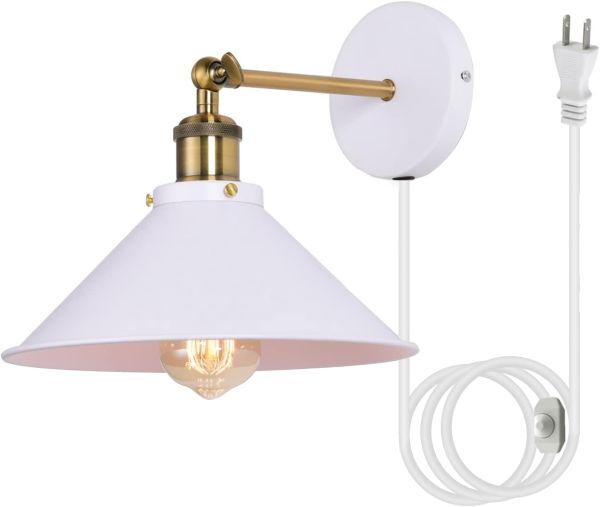 - Lightless ブラケットライト コンセント式 ウォールライト 壁付け照明 180°角度調節 調光スイッチ付き E26口金 電球別売((ホワイト))