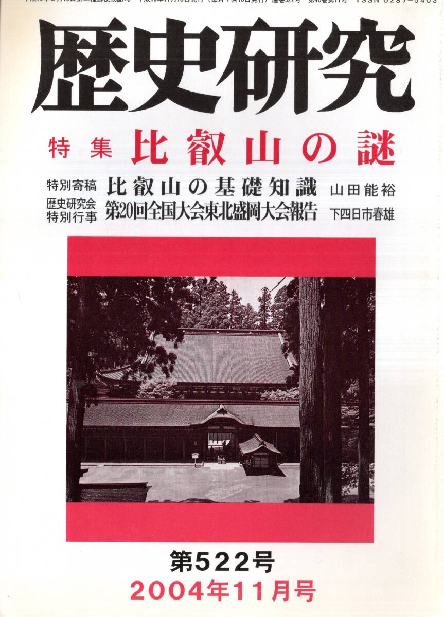 > ※歴史研究第522号特集比叡山の謎:基礎知識=山田能裕・千日回峰と三魔所=境淳伍・信長の比叡山焼討=成田勝彦・石工集団「穴太衆」~