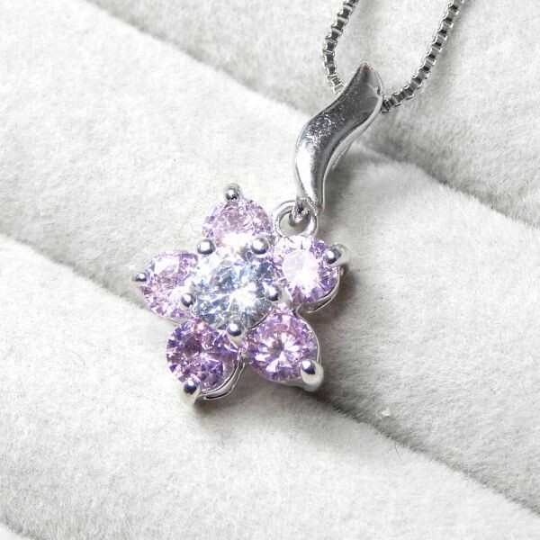 - 残り1点★新品★送料無料 フラワー 5連ピンクCZダイヤモンドネックレス キュービックジルコニア シルバー925 レディース プラチナ仕上