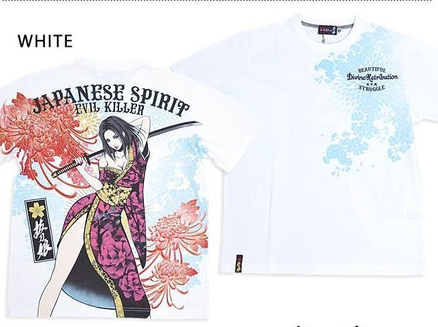 - 抜刀娘 凛の誘い半袖Tシャツ◆抜刀娘 ホワイトXXLサイズ 242122 和柄 和風 着物 花魁 舞妓