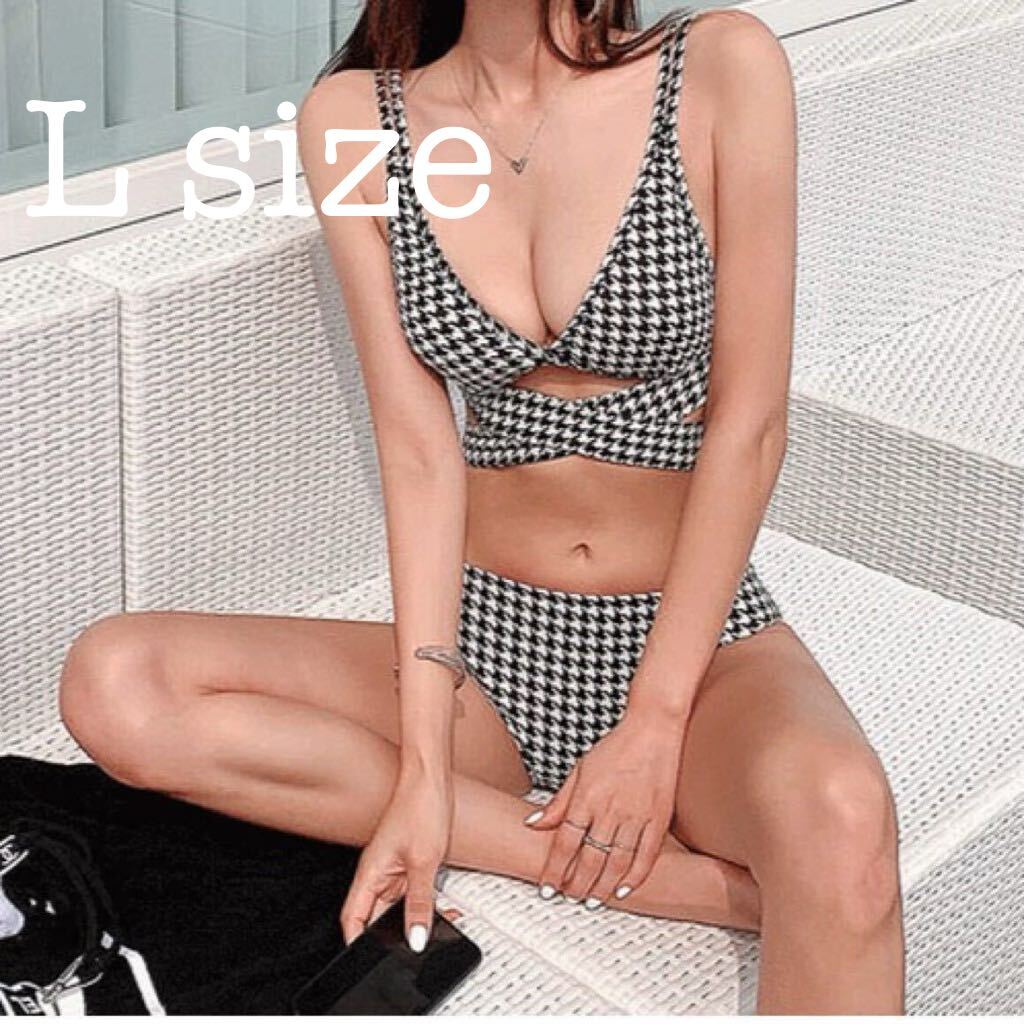 - ビキニ クロスデザイン 水着 セパレート 千鳥柄 セクシー 人気 セレブ シンプル リボン チェック ビーチ 旅行 海 プール L