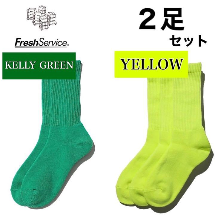 - 新品 FreshService ソックス ケリーグリーン イエロー 2足
