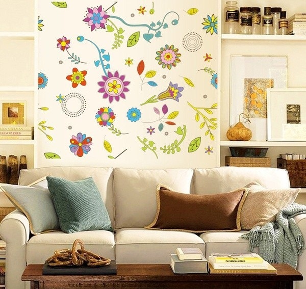 - ウォールステッカー カラフルフラワー 南国 南欧 エスニック 壁紙シール はがせる 草花 オシャレ ウォールペーパー 夏 下駄箱 雑貨屋
