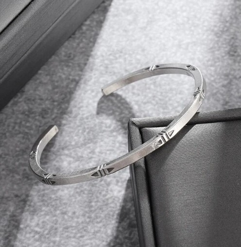 - 【ノーブランド】男性と女性のための刻まれたランチブレスレット、ファッショナブルでカジュアル、ファッショナブル【AL20543-Silver】