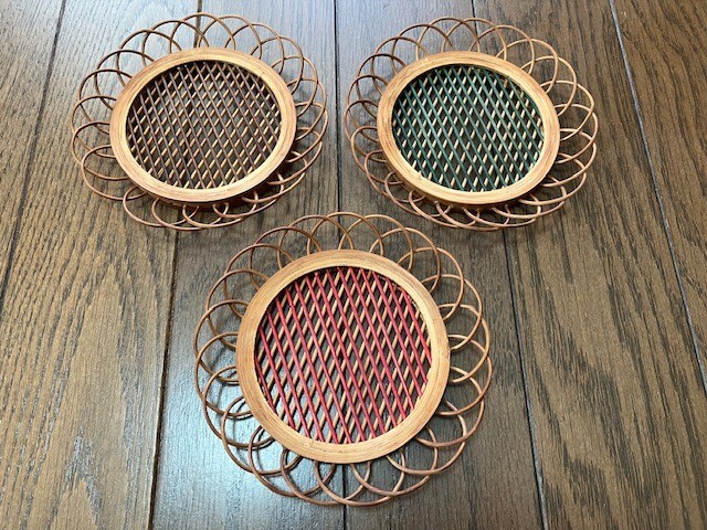 - 天然竹 格子 コースター コップ敷き コップ受け ひまわり 向日葵 径11.7cm 高1.8cm 17g×3個 夏 お茶 麦茶 送料無料 底値