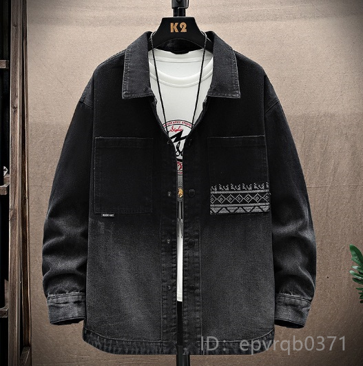 > ジージャン※新入荷 メンズ デニムジャケット 折り襟 長袖 ゆったり グラデーション 紳士 トップス サイズ選択可能 黒/XLサイズ