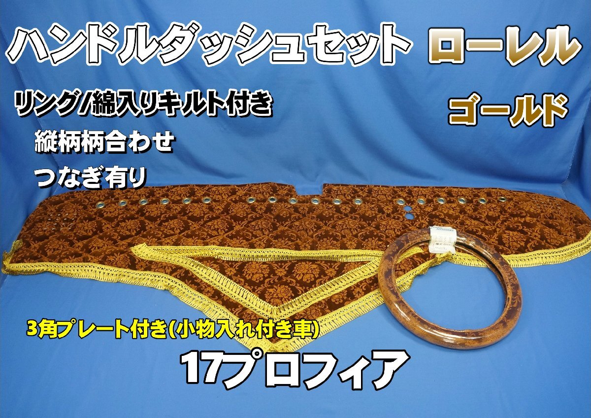 - 17プロフィア 小物入れ付車用 ローレル 縦柄 ハンドルダッシュ2点セット リング/綿入りキルト付き ゴールド