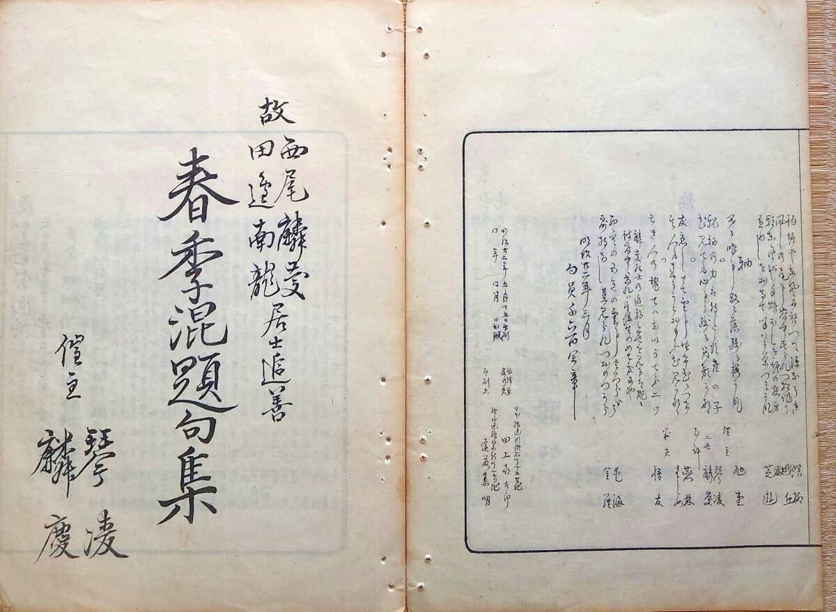 - f24041611〇刷物 摺物 俳句 俳諧 風雅会 春季混題句集 東京日本橋 明治22年〇和本古書古文書