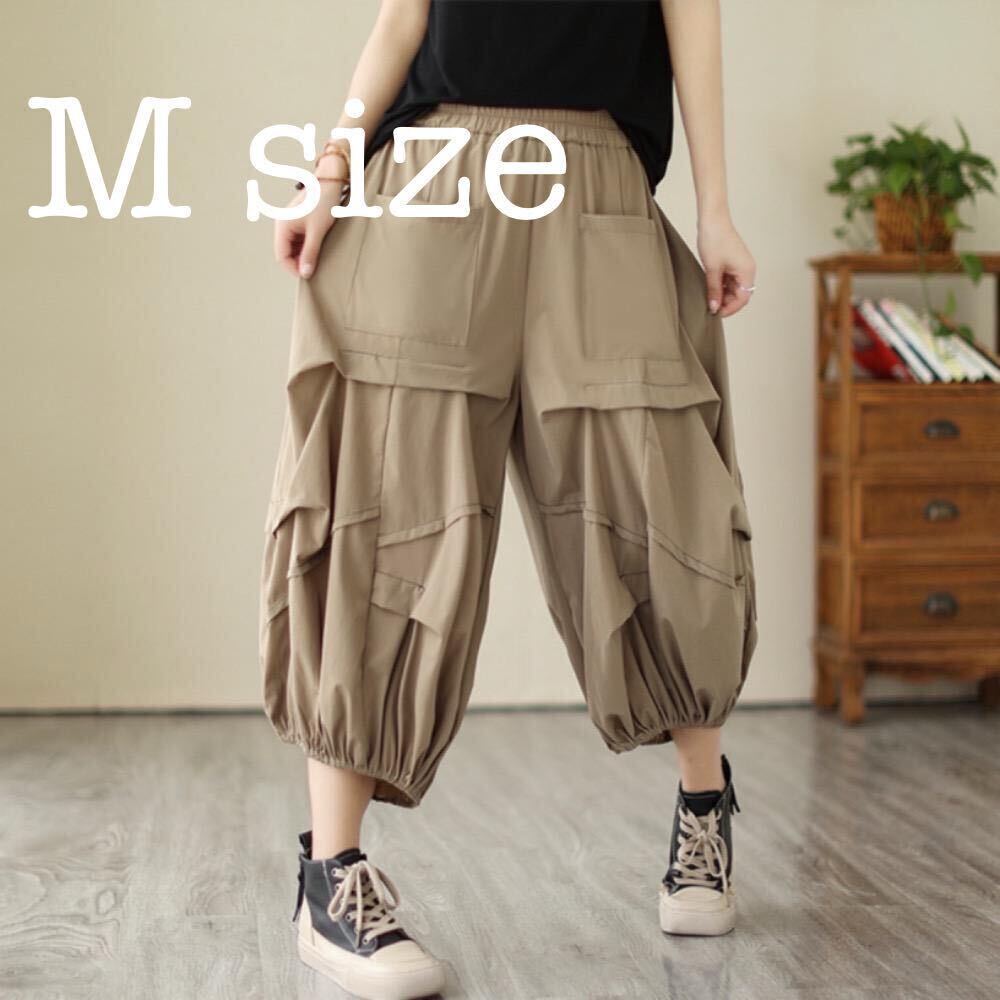 - 7分丈 ハーフパンツ カーゴパンツ ワイドパンツ 膝下丈 ボトムス ベージュ M