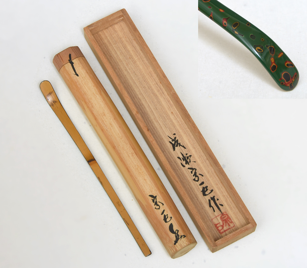 - 成瀬宗巨(作)茶杓 裏 若狭塗 共筒 共箱 茶道具 木工芸 竹工芸 漆工芸 美品 z7079o