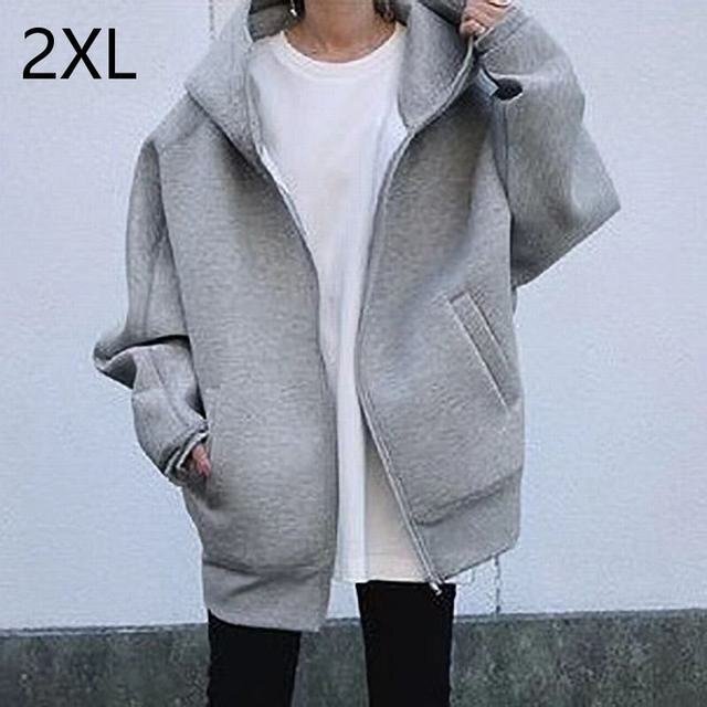 - パーカー レディース ロングパーカー 秋冬 大きいサイズ 裏起毛 暖かい 韓国風 体型カバー パーカ 長袖 羽織り グレー XXL