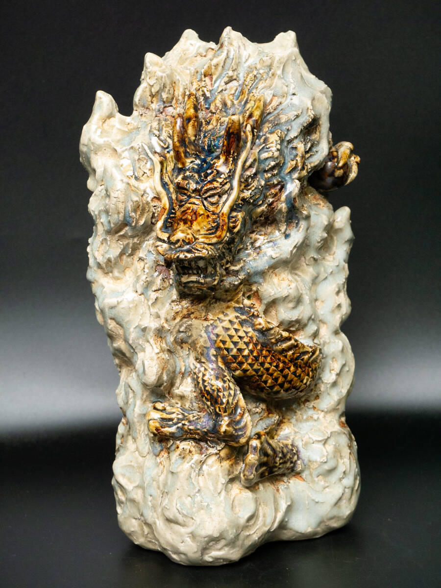 - 【値下げ交渉有り】 島常賀? 壺屋焼 陶彫 昇竜 置物 オブジェ 合木箱付