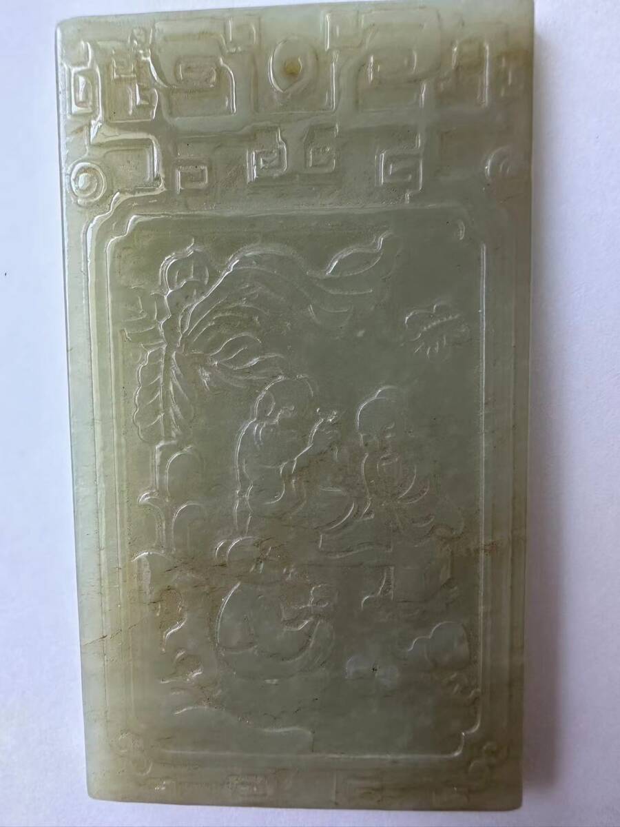 - 【超珍館蔵】和田玉製 細密彫 詩詞賦 福壽雙星紋 玉牌 置物 古賞物 古美術品 稀少珍zz