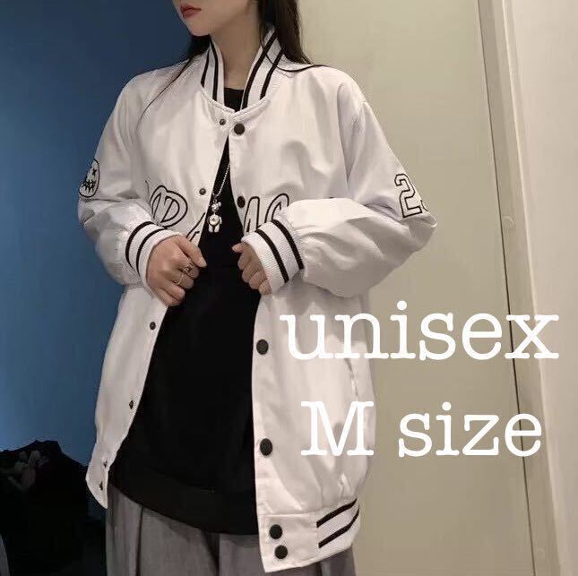 > ブルゾン ジャケット アウター ナイロンジャケット スタジャン ユニセックス 男女兼用 白 ホワイト M
