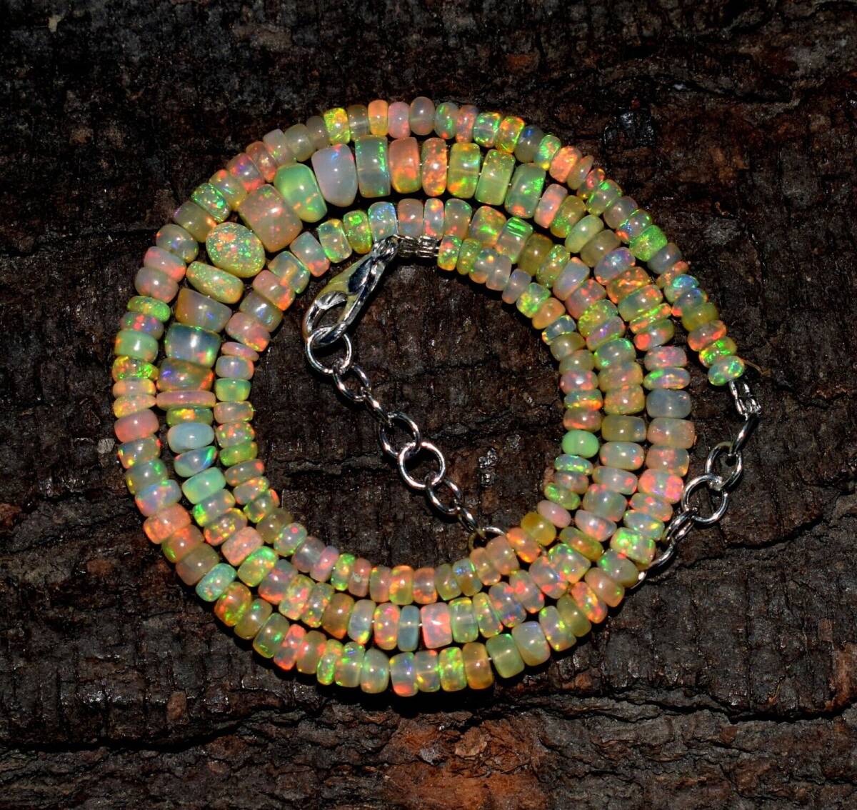 > オパール ネックレス 宝石 すぐにお届けでき。 宝石部分16インチ(40.64㎝)天然エチオピアオパールウェロファイアージェムストーン ビーズ