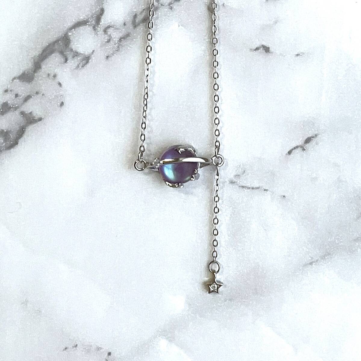 - 土星 ネックレス シルバー925 ペンダント 惑星 銀 ハート 星 Y字 宇宙 コスモ サターン