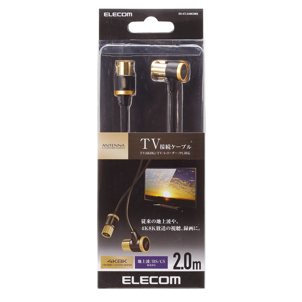 > TV用アンテナケーブル 2.0m コンパクトコネクタと柔らかスリムケーブルで地上波放送、4K8K放送の視聴、録画に最適: DH-ATLS48K20BK