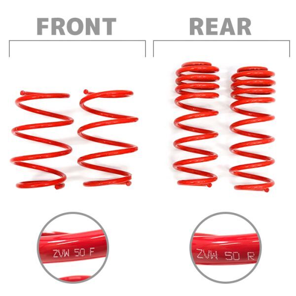 - プリウス 50 スプリング ダウンサス サスペンション 1台分 ローダウン フロント 40~45mm リア 40~45mm バネレート 27N/mm 42N/mm
