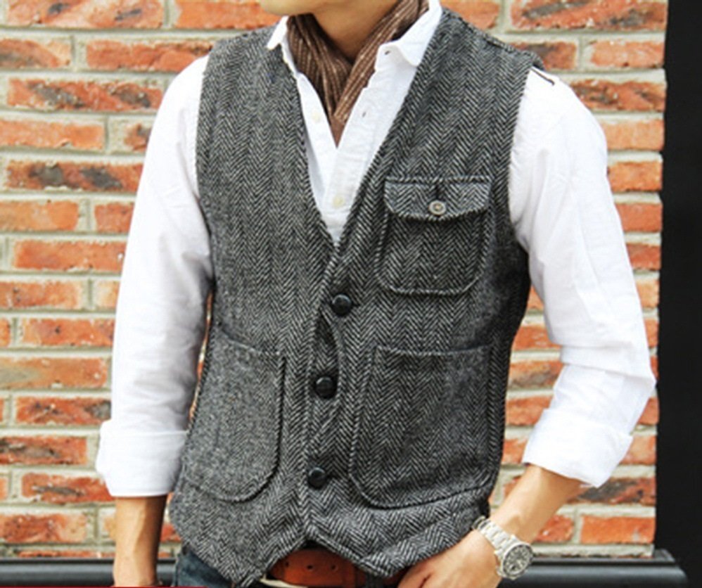 - サイズ選択可M~4XL クラシカル ツイード ウール ハンティングベスト グレー メンズ アメカジ ヴィンテージ LD044