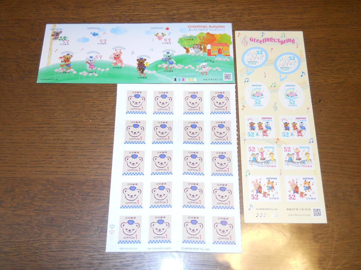 - ●ぽすくま グリーティング 52円切手 シールタイプ 3種類 春・秋バージョン&1円