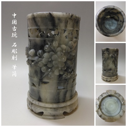 - 【T-178】中国古玩 石 彫刻 筆筒
