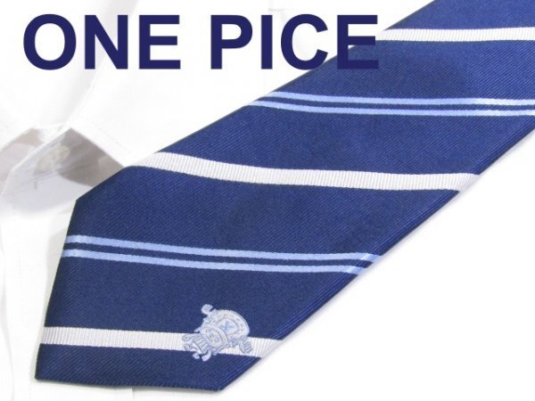 - 【ワンピース】C 647 ワンピース バンダイ ネクタイ ONE PICE 紺系 タヌキさん刺繍絵柄 レジメンタルストライプジャガード