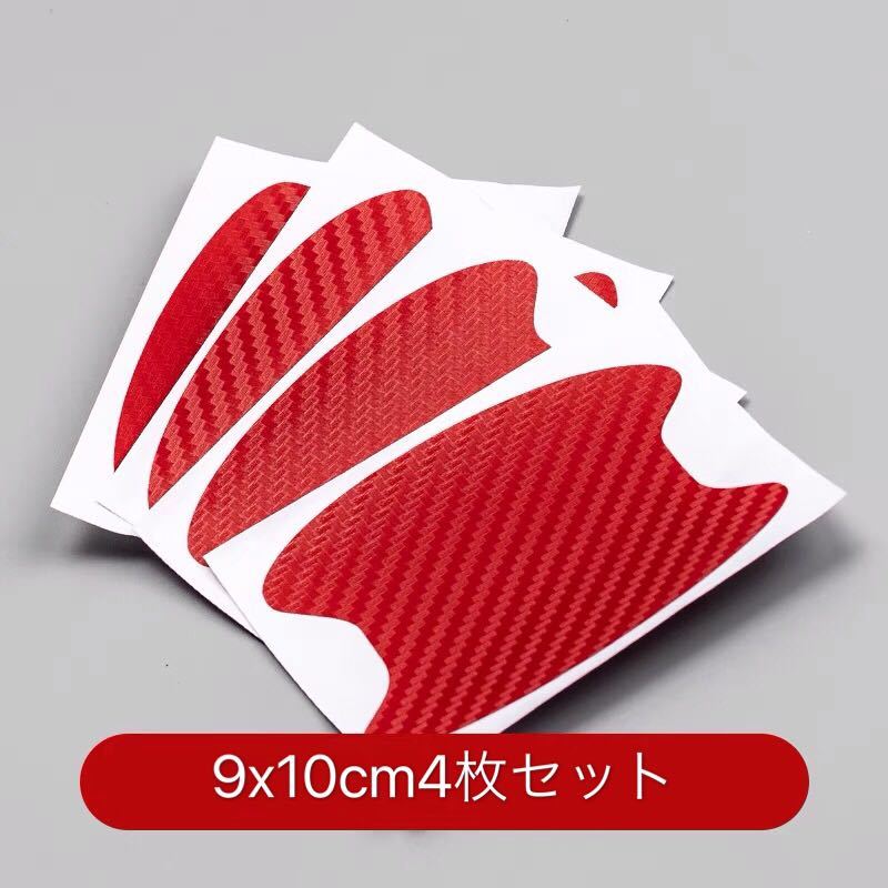 - 傷防止 4枚セットドアハンドル ドアノブ プロテクター カーボン調 レッド