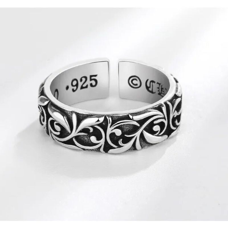 - メンズ 指輪 フォークリング シルバー×黒 調整可能 ゴツい かっこいい ヴィンテージ風