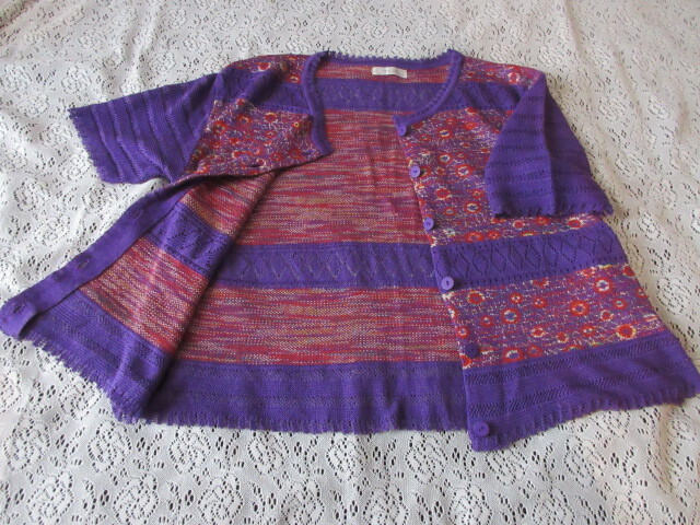 - C)■日本製■【PINORE ピノーレ】■紫系/麻15%■ジャガード編&レース編のコラボ!■冷房/UV対策に是非!素敵なお色合い!カーディガン