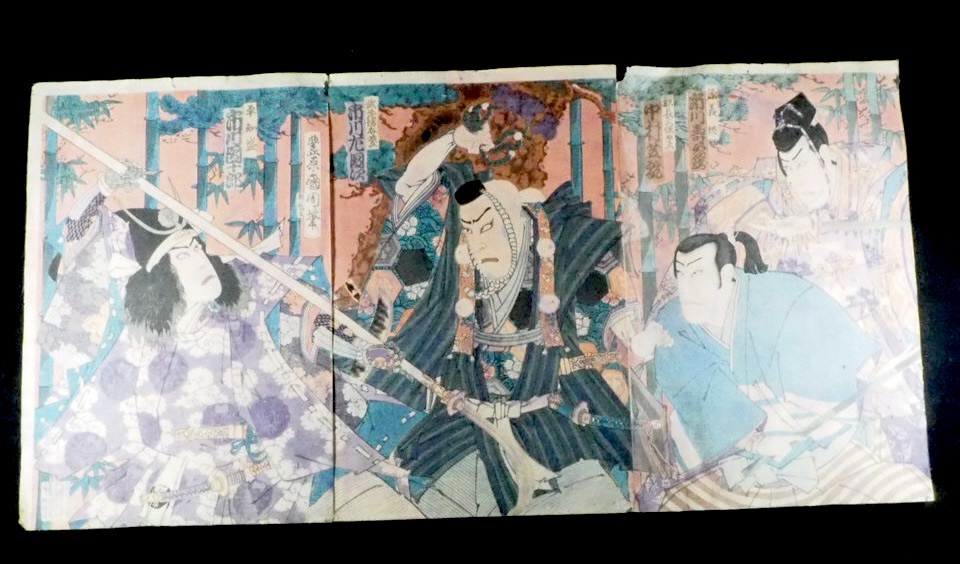 - 浮世絵木版画 錦絵 役者絵 豊原国周「船弁慶」3枚綴り SMN604(22-8)