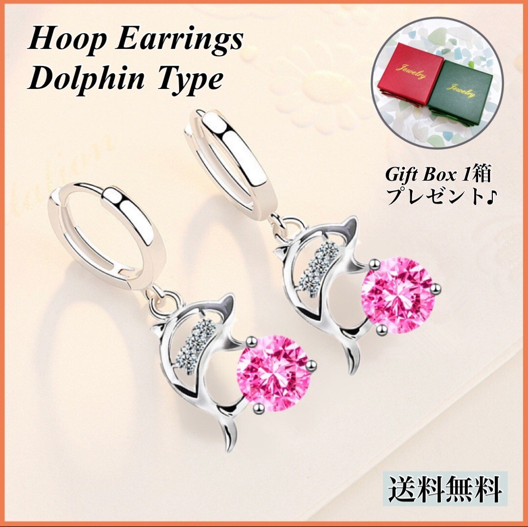 > S925 フープピアス ドルフィン ピンク オシャレ 綺麗 シルバー デート 銀 ピアス ジルコニア ハワイアンアクセサリー 通学
