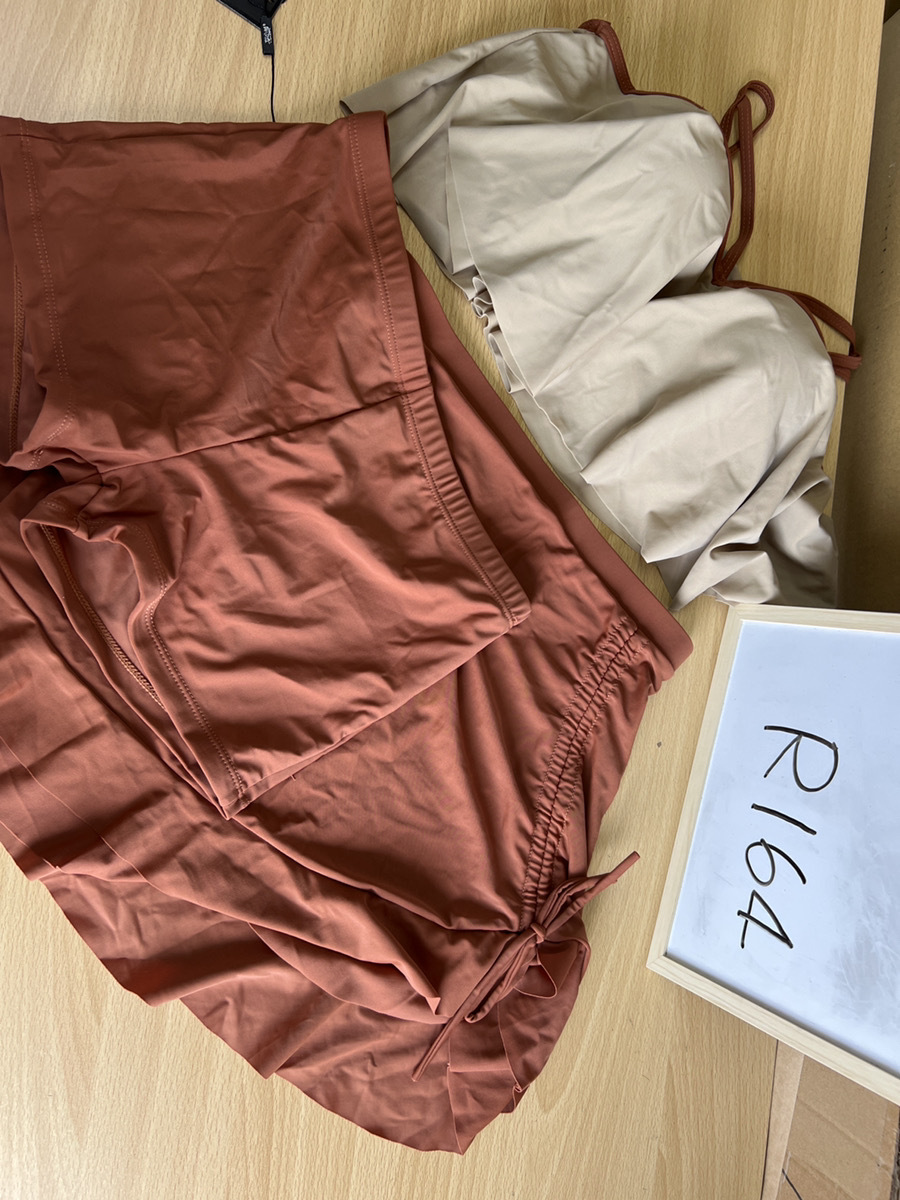 - [Lhyxuuk] 水着 レディース 体型カバー 胸元フリル ホルターネック ビキニトップス ショートパンツ付 スカート 3点セット水着 XL