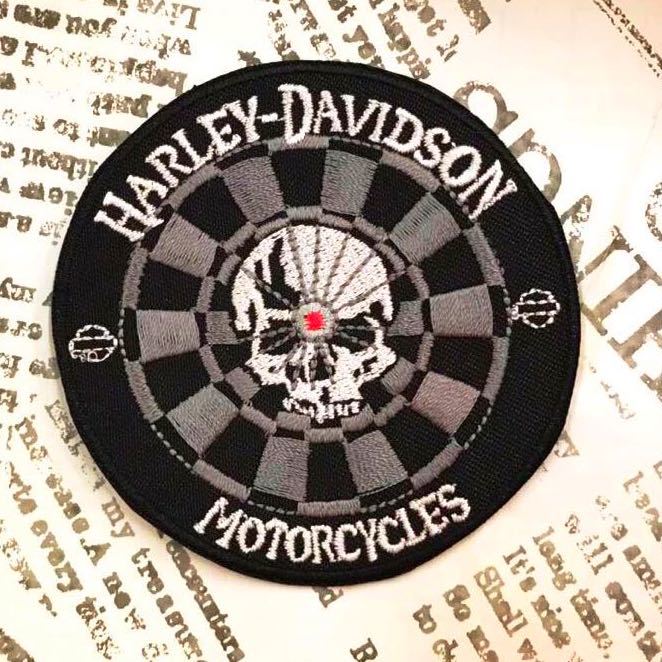 - ワッペン / HARLEY DAVIDSON ハーレー ダビッドソン スカル チェック アメリカン雑貨 手芸 裁縫 ししゅう 飾り 素材 アイロン カスタム