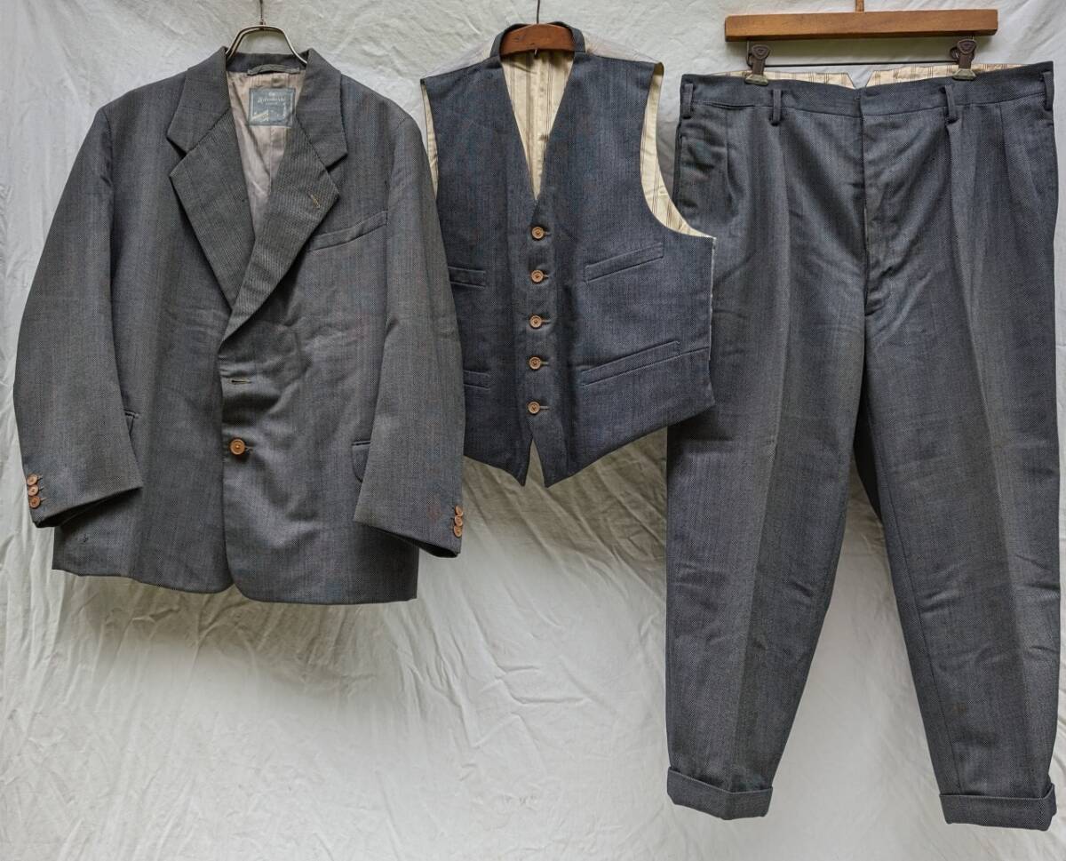 - 貴重 三越 OLD MITSUKOSHI 3ピース セットアップ ジャケット ジレ パンツ SOLIDE 日本の古い服 ジャパンヴィンテージ JAPAN VINTAGE 50s