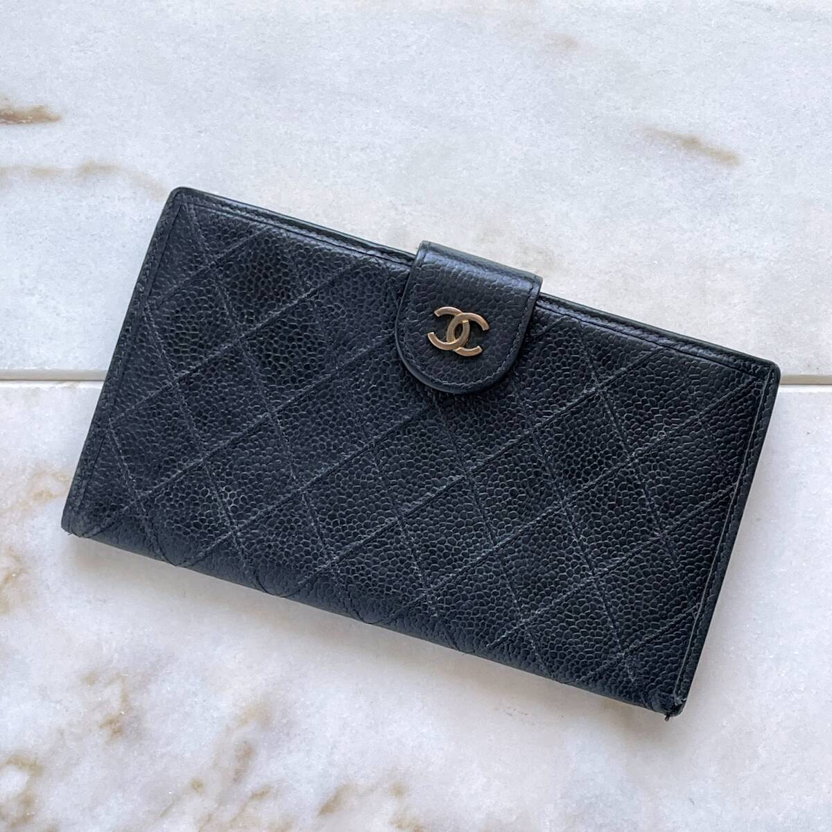 > CHANEL シャネル キャビアスキン ピコローレ 長財布 がま口 レザー ブラック 黒 本革